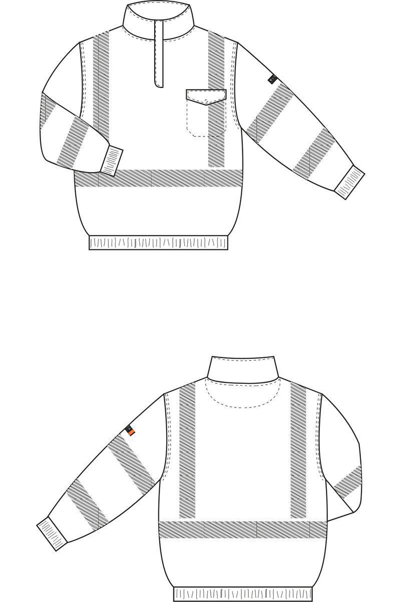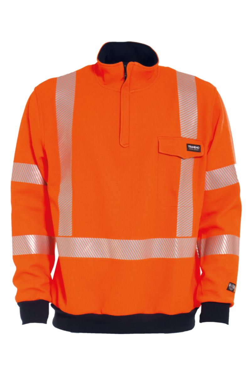 Pehmeä ja mukava metalliton sisäisesti palosuojattu huomiocollege, jossa lyhyt vetoketju edessä. Lyhyt vetoketju edessä. Läpällinen rintatasku. Hihansuissa ja helmassa resori. Päälle painetut heijastimet lisäävät mukavuutta. *College on yhdistelmäsertifioitu ja saavuttaa EN ISO 20471 LK.3 yhdessä Tranemo housujen tai avosuojan kanssa, jotka ovat sertifioitu EN ISO 20471 LK.1 tai CL.2 mukaan.