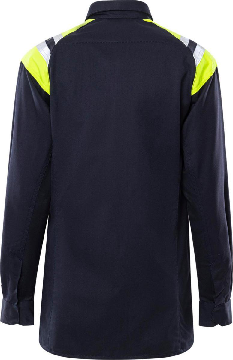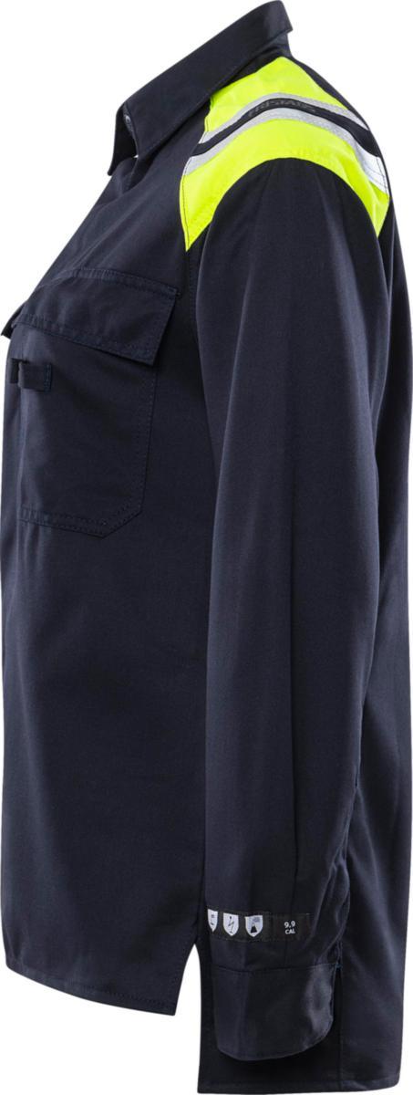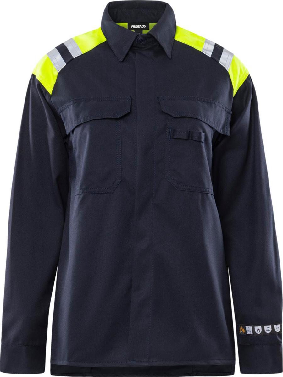 Heijastavat yksityiskohdat olkapäillä / Ribbineulottu nauha kauluksessa ja hihansuissa / Hyväksytty standardien EN 61482-1-2 luokka 1 ja EN 61482-1-1 EBT mukaisesti: 5,9 cal/cm² HAF: 78,9 % (katso valokaaritaulukosta standardin EN 61482-1-2 luokka 2 mukaan sertifioidut vaateyhdistelmät ja open arc -sertifioidut vaatteet standardin EN 61482-1-1 mukaan), EN ISO 11612 A1 B1 C1 ja EN 1149-5 / Testattu teollisen pesustandardin ISO 15797 mukaisesti / ÖKO-TEX® -sertifioitu.