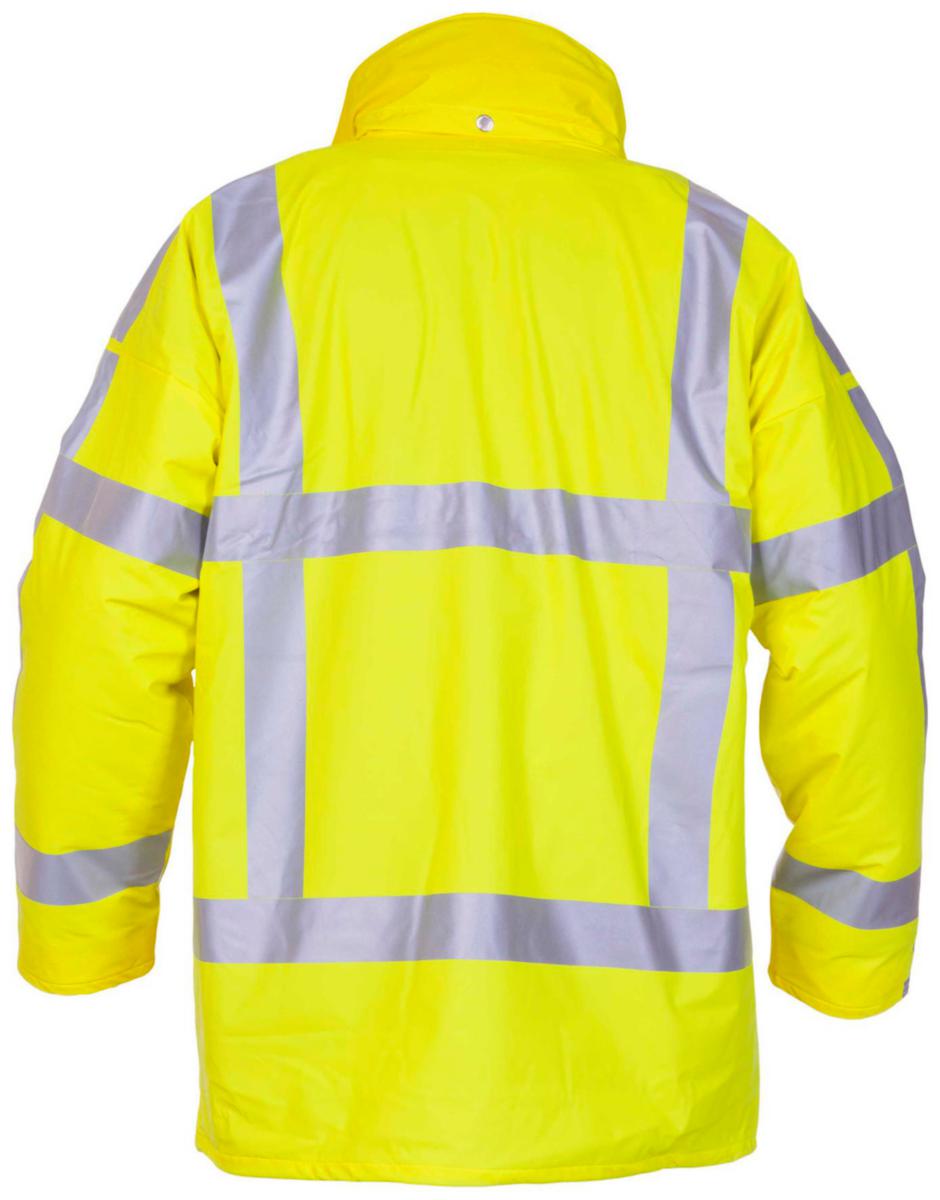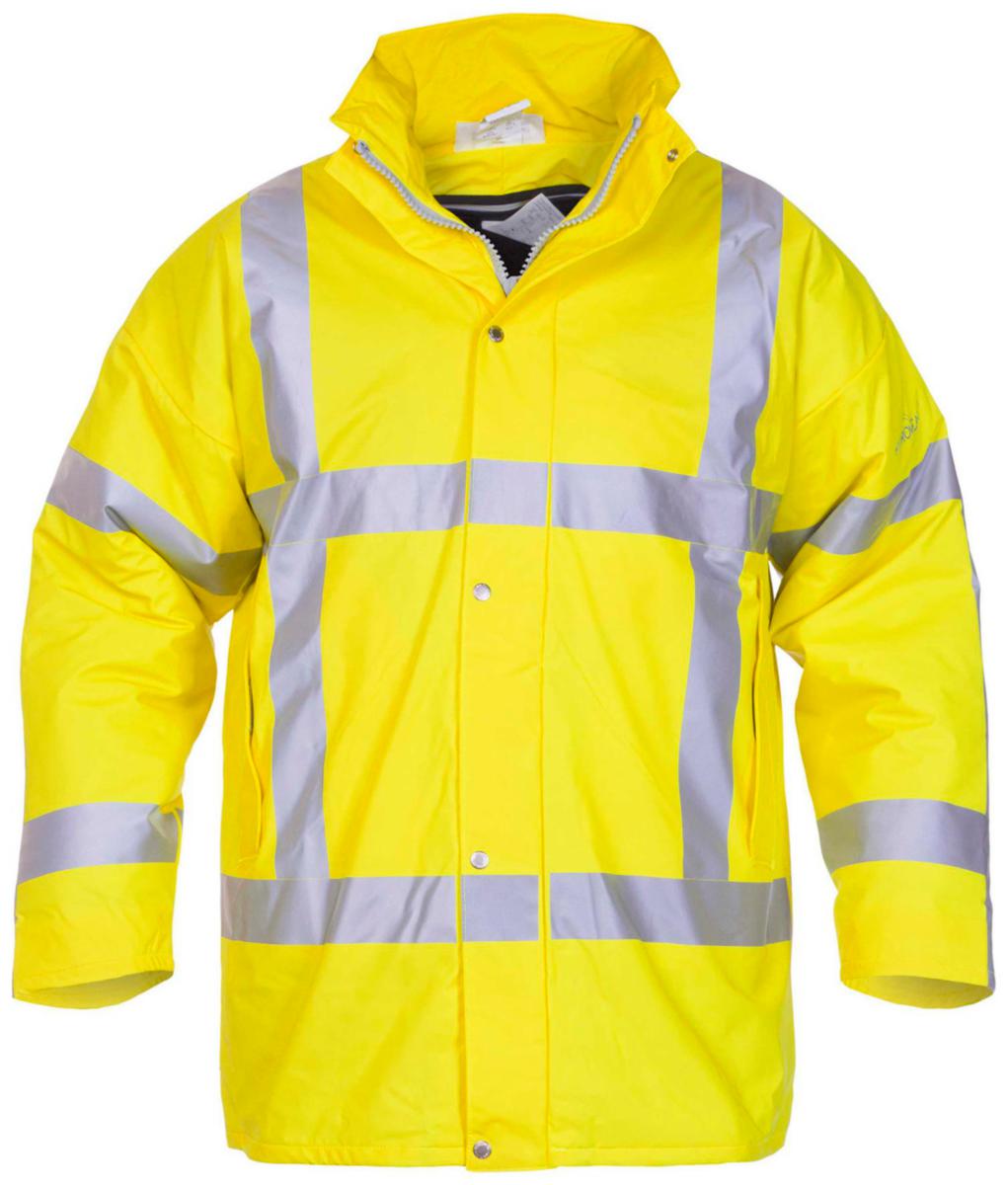 Tuulen- ja vedenpitävä palosuojattu näkyvä sadetakki ammattikäyttäjälle, joka työssään altistuu tulelle, kuumuudelle, kipinöille, valokaarille ja kemikaaliroiskeille. Takin pituus 85 cm. Edessä vetoketjut ja tuulilista painonapeilla. Joustavat painonapeilla säädettävät hihansuut. Kaksi läpällistä etutaskua. Kiinteä huppu.Kainaloissa tuuletusaukot. RWS heijastimet. Väri: keltainen, oranssi saatavana tilaustuotteena.