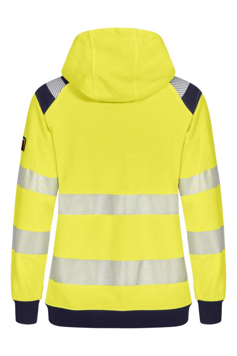 Sisäisesti palosuojattu metallivapaa ja näkyvä pehmeä collegetakki hupulla 50 % uusiokäytettyä puuvillaa. PFAS-vapaa.