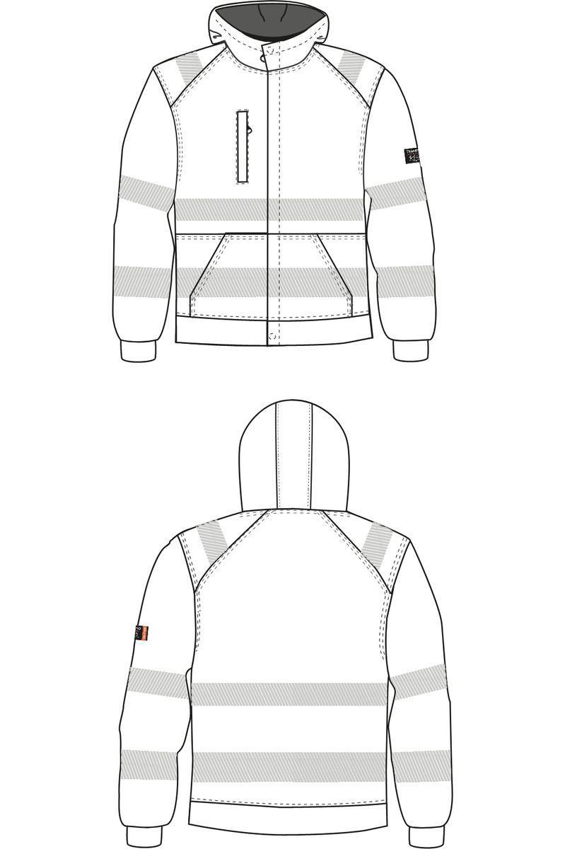 Piilotettu vetoketju edessä. Huppu. Vetoketjullinen rintatasku. Sivutaskut. Neulos hihansuuussa. Painetut heijastinnauhat lisäävät mukavuutta. *Vaate on yhdistelmätestattu ja saavuttaa EN ISO 20471 CL.3 yhdistettynä Tranemon housujen tai avosuojan kanssa, jotka ovat EN ISO 20471 CL.1 tai CL.2 mukaan sertifioitu.