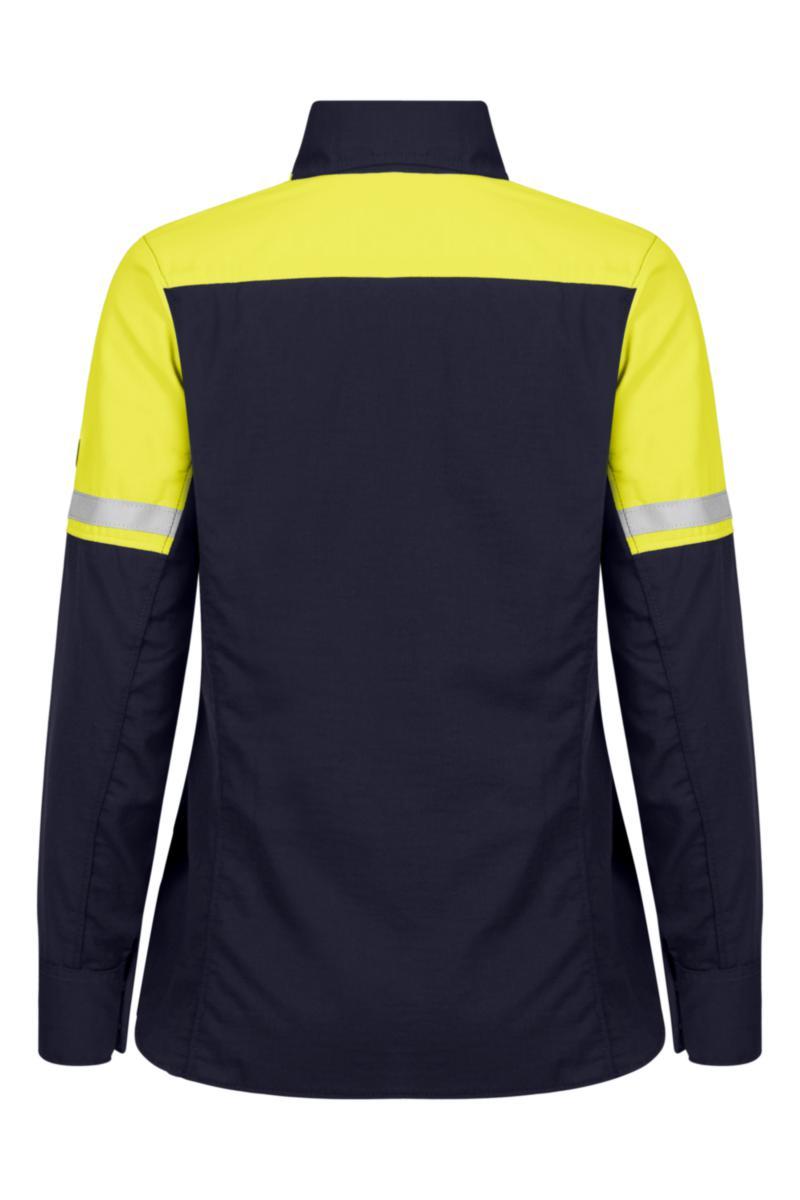 Metallivapaa ja sisäisesti palosuojattu naisten kauluspaita korostetulla näkyvyydellä, kevyt ja mukava laatu.