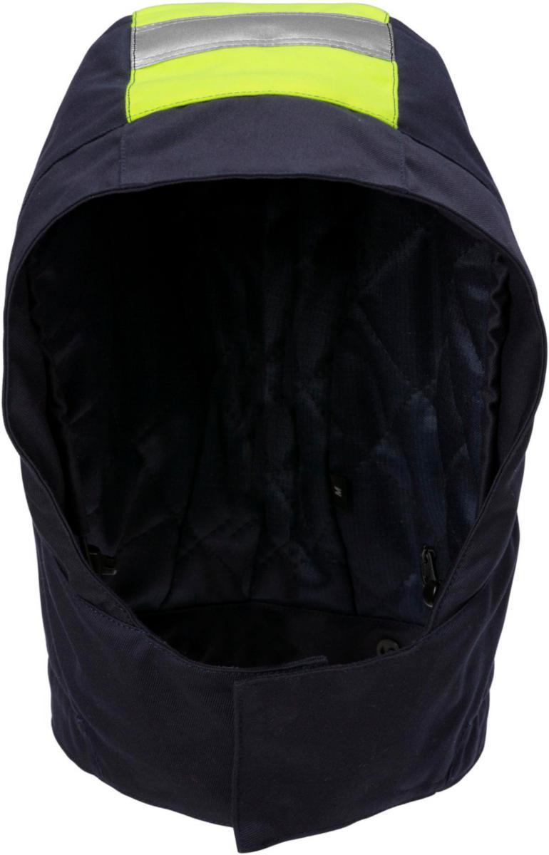 Palosuojattu huppu, jonka voi yhdistää talvitakkiin 119923. Käytettävissä kypärän kanssa.