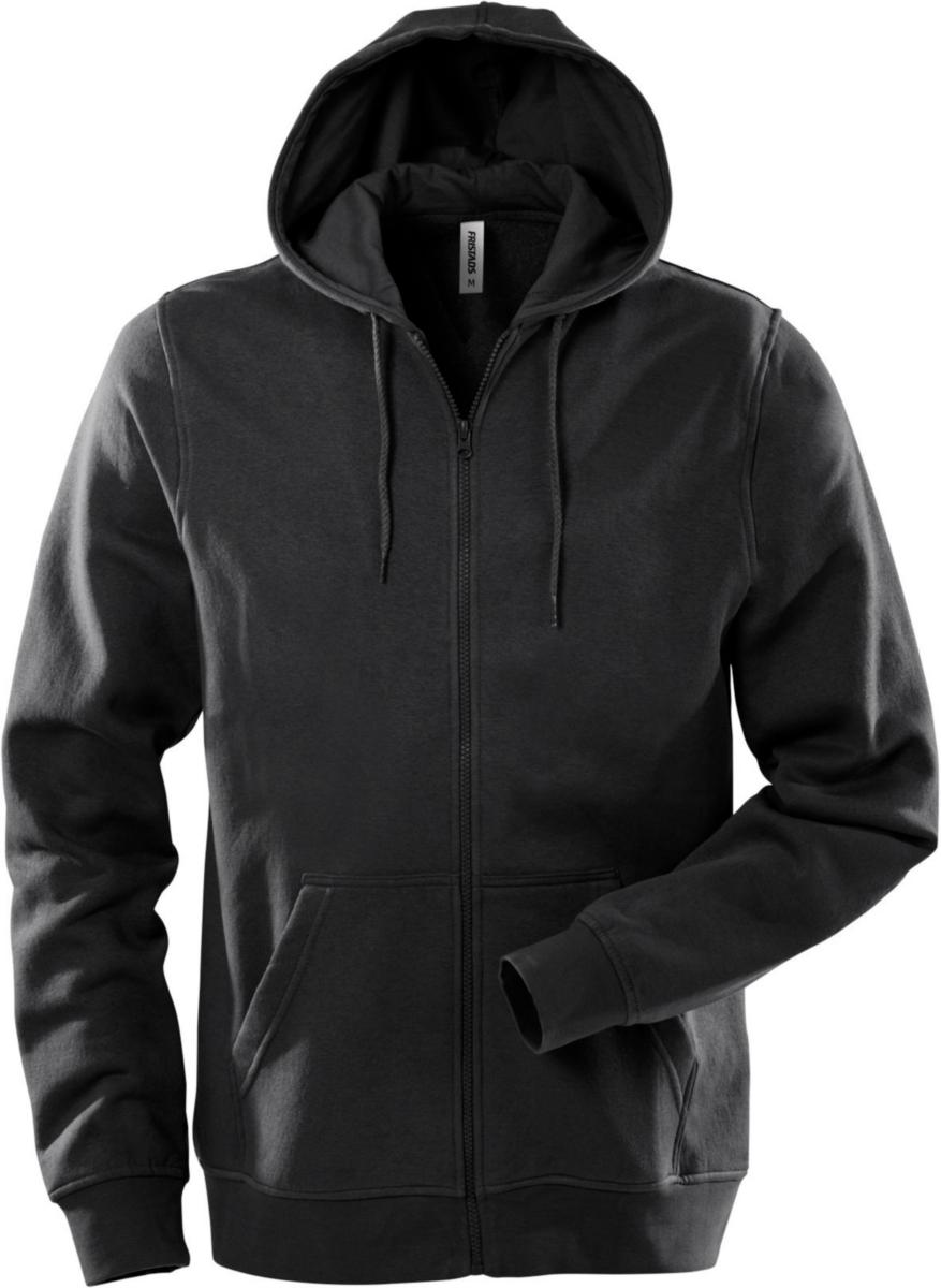 Klassinen huppari kokopitkällä vetoketjulla ja etutaskuilla.