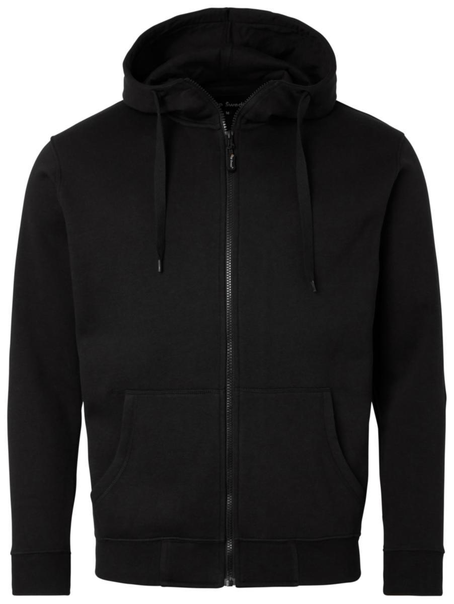 Huppari, jossa täyspitkä vetoketju. Huppu. Sivutaskut. Materiaali: 80% puuvilla 20% polyesteri