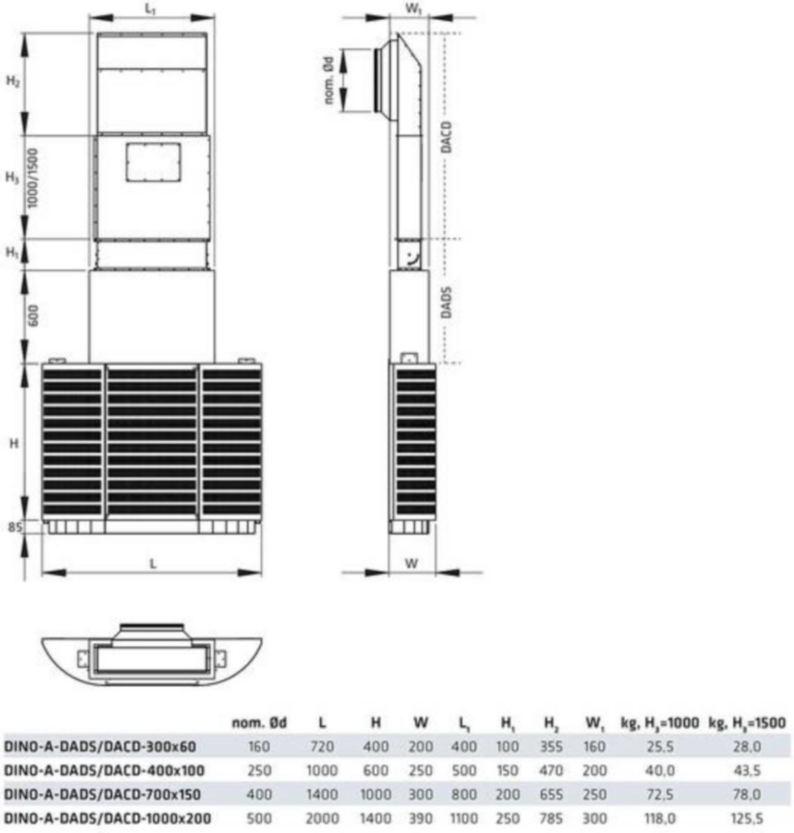 DACD on liitoskappale, joka yhdistaa DINO-A:n suorakaiteen muotoisen kanavan pyöreään tuloilmakanavaan.