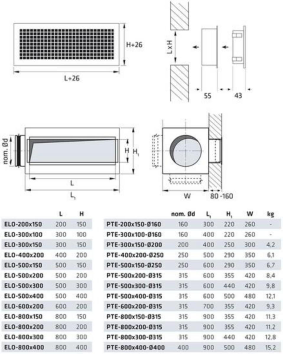 POISTOILMASÄLEIKKÖ ELO 800X200