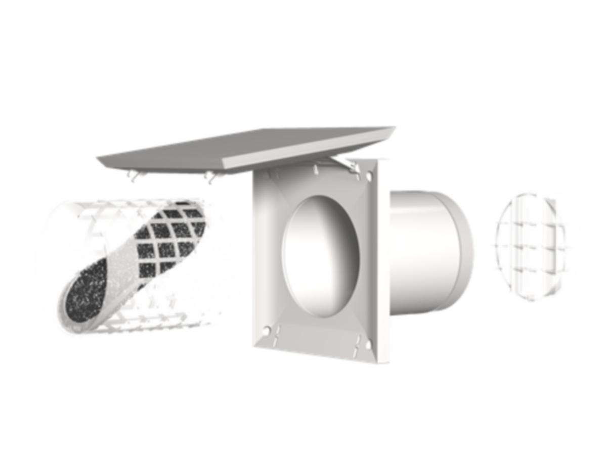 TL100DE seinään asennettava korvausilmaventtiili on suunniteltu ylläpitämään jatkuvaa ilmanvaihtoa kodissasi. Ainutlaatuisen puhalluskuvion ja tehokkaiden suodattimien ansiosta korvausilma on vedonta ja raikasta. Myyntipakkaukseen kuuluu venttiili, teleskooppinen läpivientiputki ja ulkosäleikkö. Sisäventtiili ja ulkosäleikkö kiinnittyy suoraan sisä- ja ulkoyhteisiin. Venttiilin sisäosassa on tehokas kondensaatioeriste, suodatin sekä kansi, jonka kulmaa kääntämällä säädetään ilman virtausta. Teleskooppikanavan pituus on 185...340 mm, halkaisija 98/104 mm. Kanavan voi asentaa jopa 150 mm:n paksuiseen seinään lyhentämällä molempia kanavia päistä, jolloin teleskooppiominaisuus säilyy.
