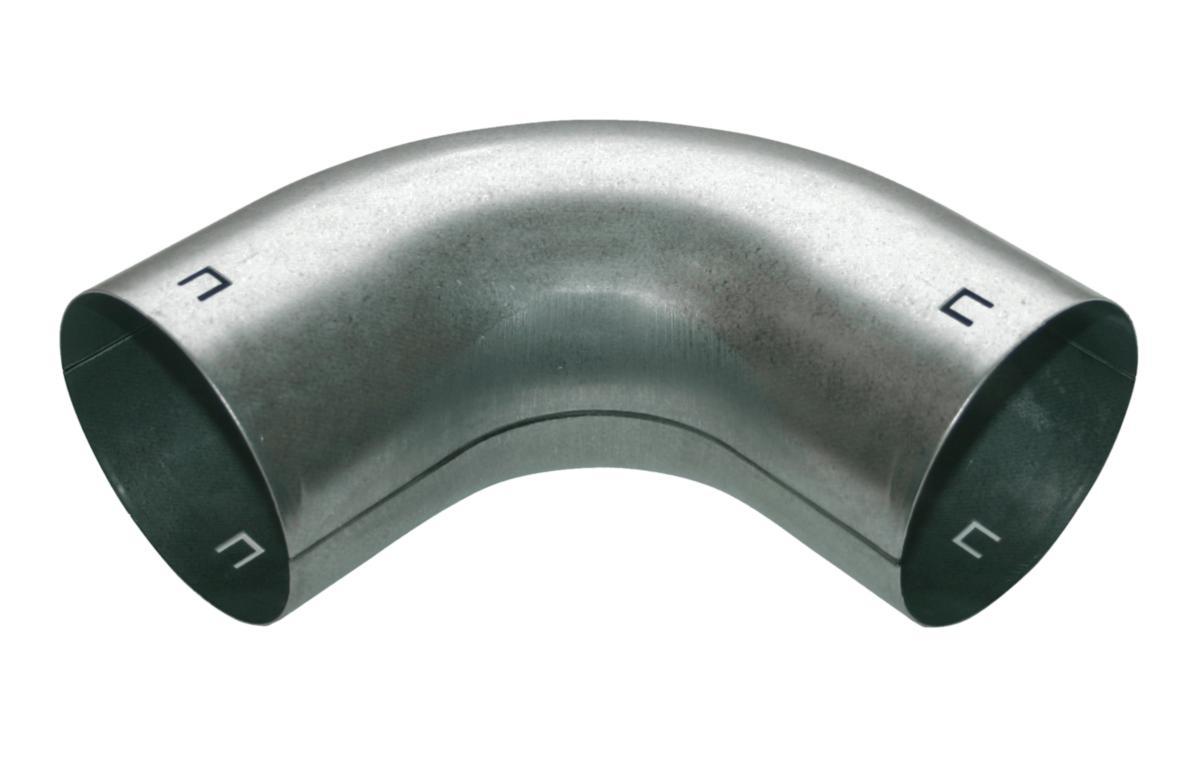 Vallox Blue Sky-kulmayhde 90°. Tarkoitettu ahtaisiin paikkoihin, joihin Blue Sky-putken taivutussäde ei riitä. Valmistettu sinkitystä teräslevystä.