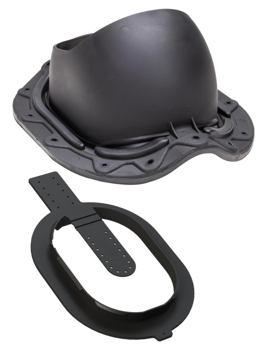 Käyttökohteet: Pyöreäharjaiset (tiilikuvioiset) muotopeltikatteet. Tiilikuvion pituus ? 350 mm, korkeus 39 mm. Läpivienti on muotoiltava, ja sen alapuolelle istutettu kumitiiviste varmistaa vedenpitävyyden. Käytetään VILPEn P-sarjan ? 110–125:mm tuuletus- ja poistoputkien sekä huippuimureiden kanssa. Poikkeuksena läpiviennin kanssa sopii käytettäväksi myös 160 mm:n eristämätön tuuletusputki sekä 160 mm:n P-sarjan Intake-tuloputki.