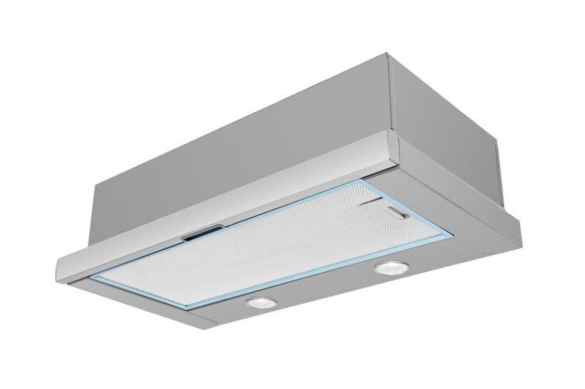 Rosa-SC61s, Leveys 598mm, Etulista Ruostumaton teräs, Kaapistoon integroitava, Liukuversio, Kytkimet: sähköinen, Oma puhallin, Led-valot, pistotulppaliitäntä