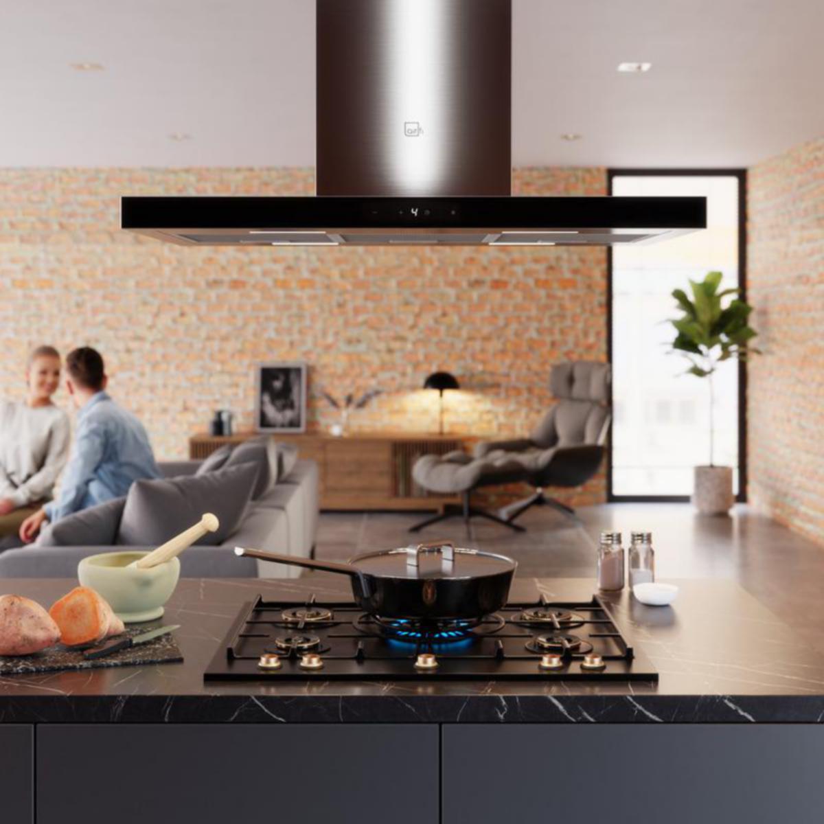 Eva-CD91s, Leveys 900mm, korkeus säädettävissä, Ruostumaton teräs, lasi musta. Vapaasti sijoitettava malli, Kytkimet: Kapasitiiviset kytkimet integroitu etupaneeliin. Oma puhallin, Led-valot, pistotulppaliitäntä, kanavasuoja