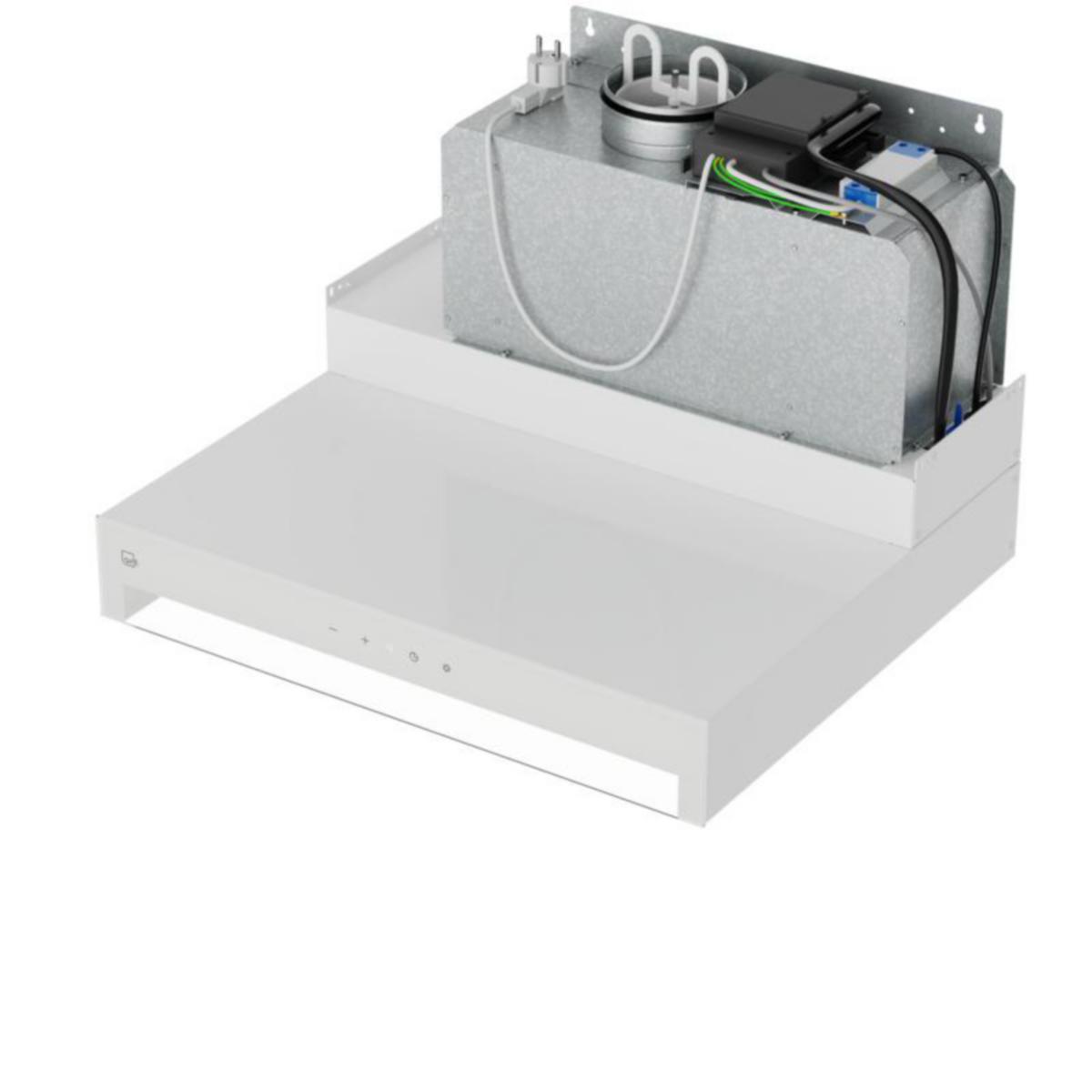 Lisa-CE55w, Leveys 498mm. Kerrostalokupu omalla savunrajoitinventtiilillä ja ääneneristysyksiköllä. Runko valkoinen, Etuosa valkoinen lasi. Kaapistoon integroitava, Kiinteä rakenne. Kytkimet: Kapasitiiviset kytkimet etupaneelissa, Tehostusläppä ajastimella, tilatieto/kompensointipellin ohjaus. Led-valot,