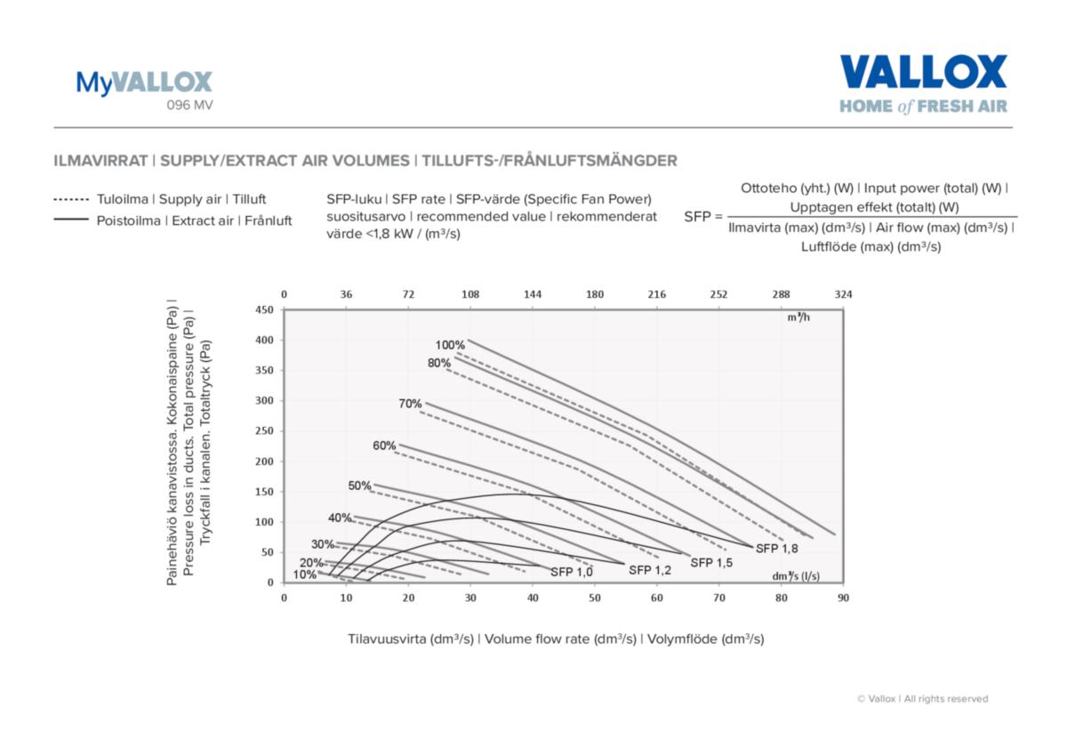 - Lämpöteho 70 % ilmamäärällä 50 Pa:ssa: 85.5 %