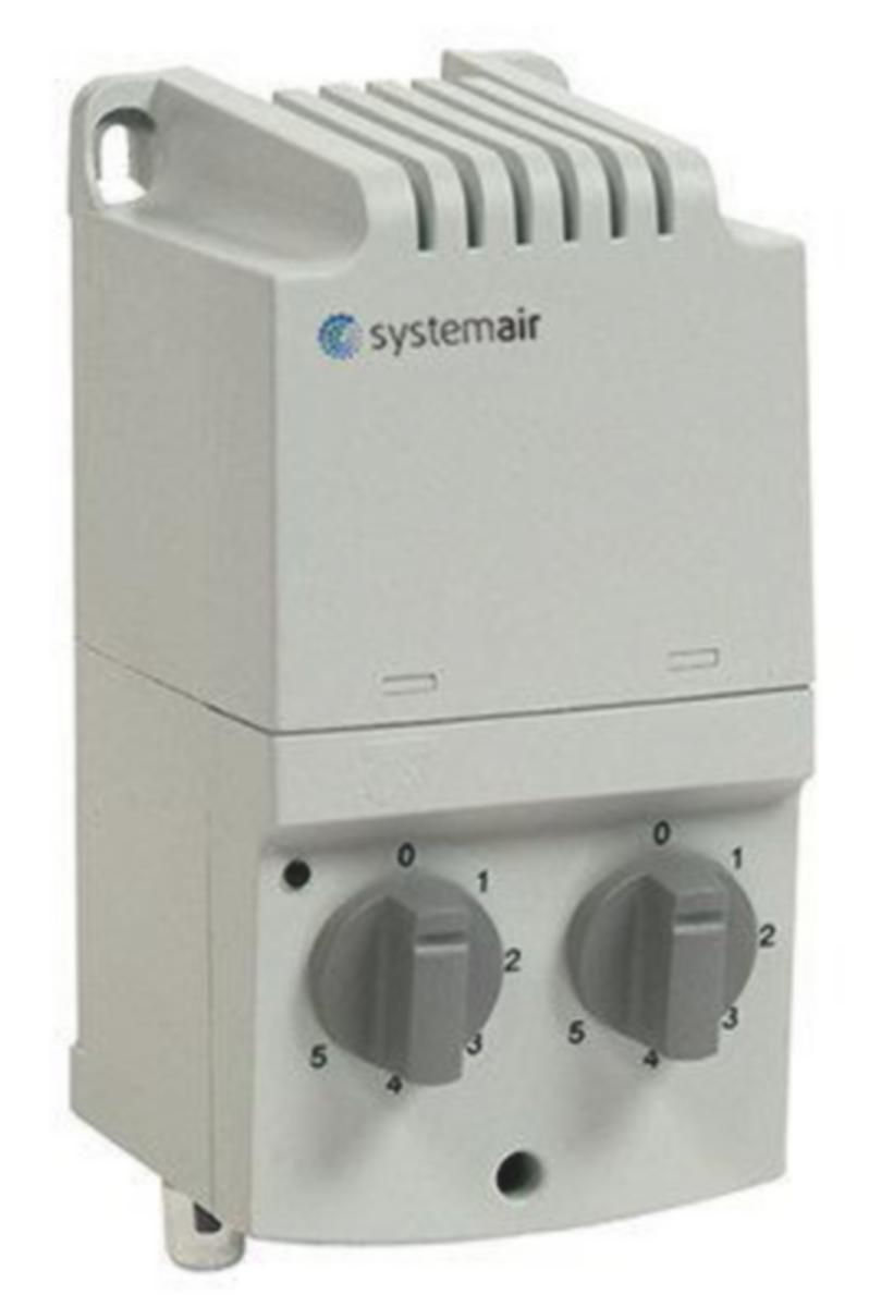 Manuaalinen 5-portainen muuntaja. 1-vaihemuuntaja, joka säätää puhaltimen kierroslukua muuttamalla syöttöjännitettä viidessä portaassa. Portaat asennetaan muuntajan etulevyn kytkimestä. Etulevyssä on kaksi kytkintä: yksi korkeille puhallinnopeuksille ja yksi alhaisille puhallinnopeuksille. Vaihto nopean ja hitaan välillä tapahtuu ulkoisen vaihtokytkimen, kuten termostaatin tai ajastimen, kautta. Etupaneelissa oleva merkkilamppu näyttää, onko muuntaja toiminnassa. Sulake kytketään takaisin ulkopuolelta. REU:n kaapu on itsesammuvaa termomuovia. Syöttöjännite: 230V 50/60Hz. HUOM! Puhaltimet, joissa on ulostuodut lämpökytkinjohdot (TK) on aina kytkettävä erilliseen lämpösuojakytkimeen.
