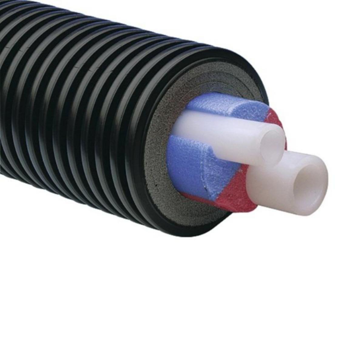Eristemateriaalina umpisolunen PEX-solumuovi. Paineluokka PN10, suojakuori korrugoitu PEH, SN4.