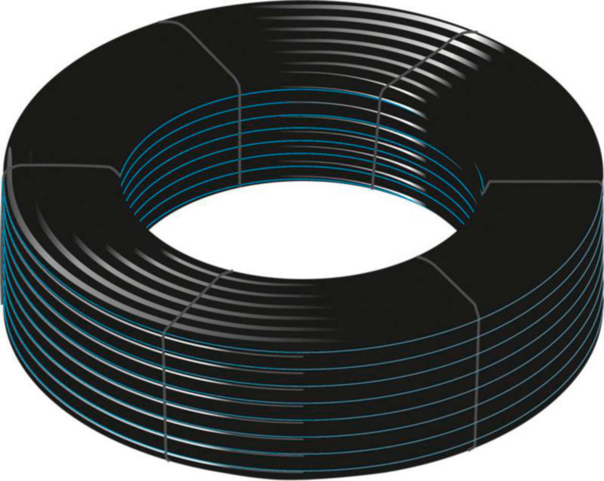 PE-vesijohtokieppi, PN 10. Valmistettu standardin EN 12201 mukaan. Putki on väriltään musta ja siinä on siniset tunnisteraidat. SDR 17, PE 100. Putkella on Nordic PolyMark -hyväksyntä.