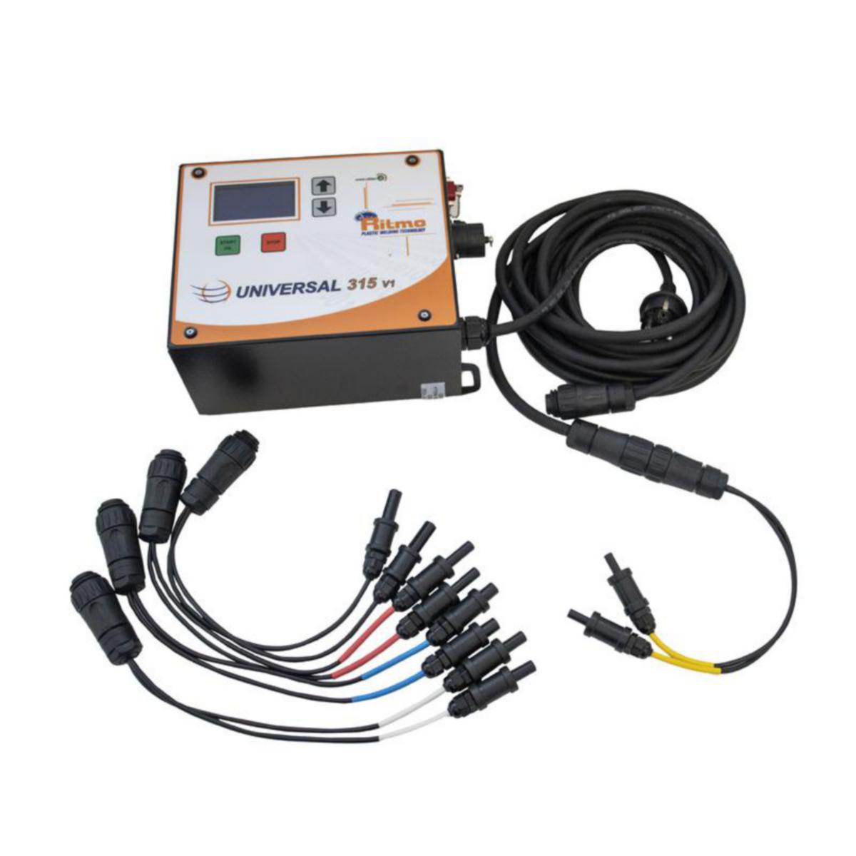 Universal 315 V1 -sähköhitsauskone tunnistaa automaattisesti hitsattavaan osan ja asettaa hitsausparametrit. Hitsauskone havaitsee ja ilmoittaa mikäli liitososassa on vikaa. Sähköhitsauskoneen mukana tulee tarvittavat hitsauskaapelit (A00, A00+, A01, A02, A04), joten adaptereita ei tarvita. Mukana myös käsiskrapa putken pinnan kuorimiseen. Laite toimitetaan kestävässä kuljetussalkussa.