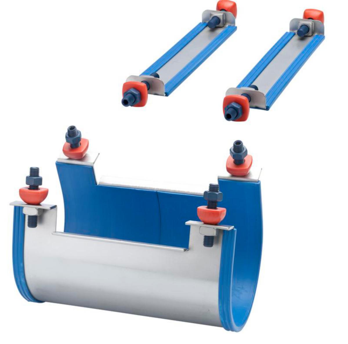 265 mm sanka PE- ja PVC-putkille, toimitetaan taivutettuna asennuksen helpottamiseksi. Kiinnileikkautuminen estetty kahdella mutterilla. Kumivuorattu putken suojausta varten. Pultit, mutterit ja aluslevyt sisältyvät toimitukseen. Pultit ja mutterit pinnoitettu avaamisen helpottamiseksi.