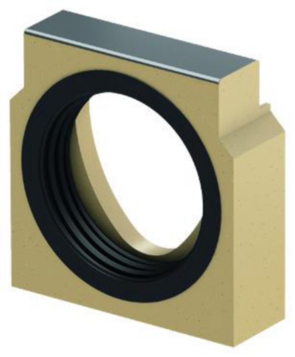 150mm korkea päätylevy DN110 poistoyhteellä Aco Multiline Seal In V100S linjakuivatuskouruihin. Leveys 135mm, pituus 30mm