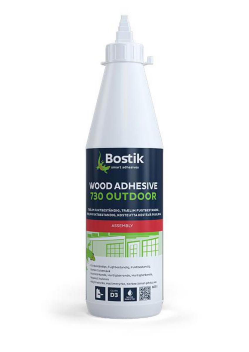 Bostik 730 Puuliimaa käytetään esim. ikkunakarmien, ulko-ovien, seinäelementtien ja muihin puusepänteollisuuden liimauksiin, joissa tavalliset PVA-dispersioliimat eivät täytä vaatimuksia kosteuden ja vedenkeston suhteen.