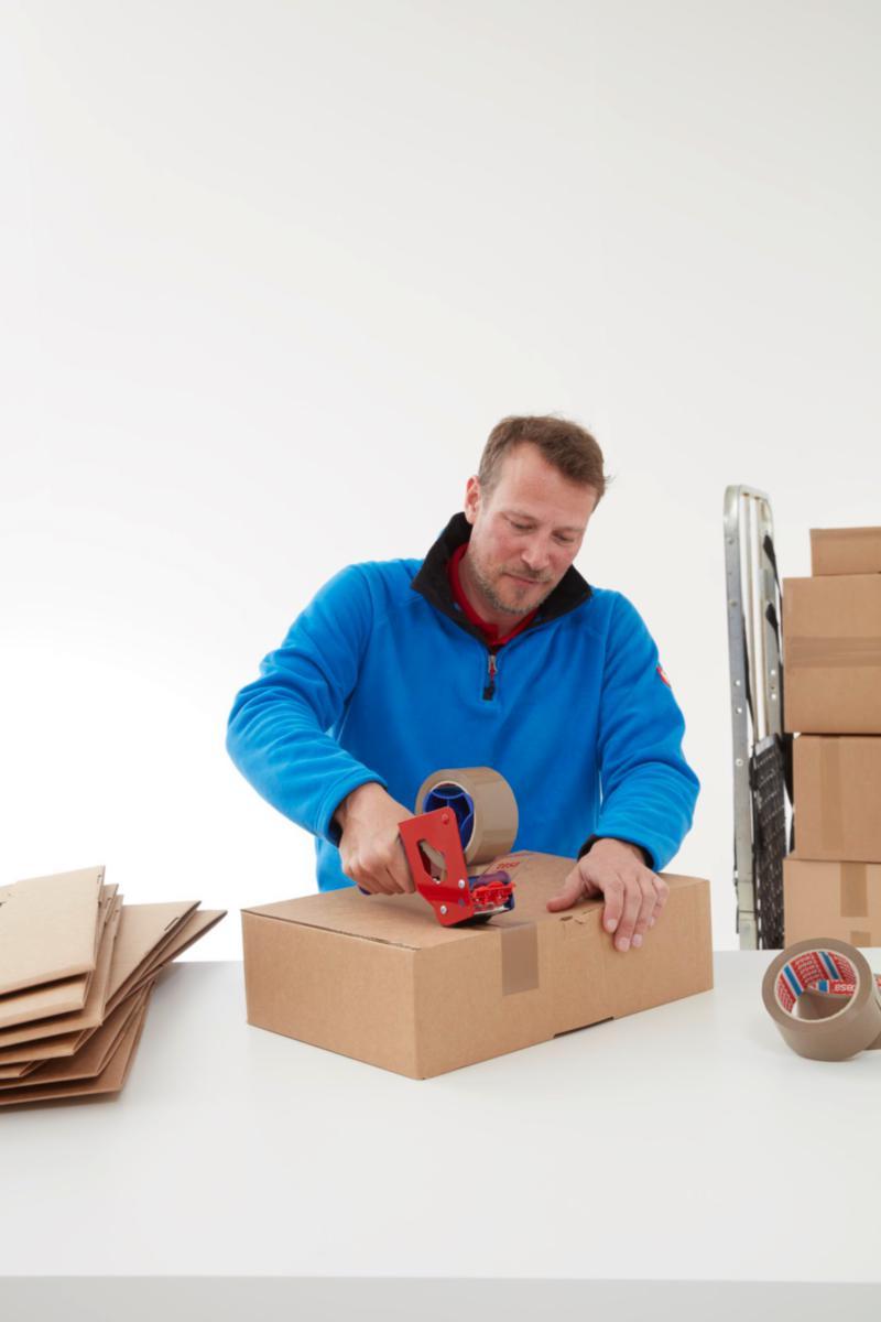 tesa® 4120 -teippiä käytetään keskiraskaiden pakkausten manuaaliseen sulkemiseen