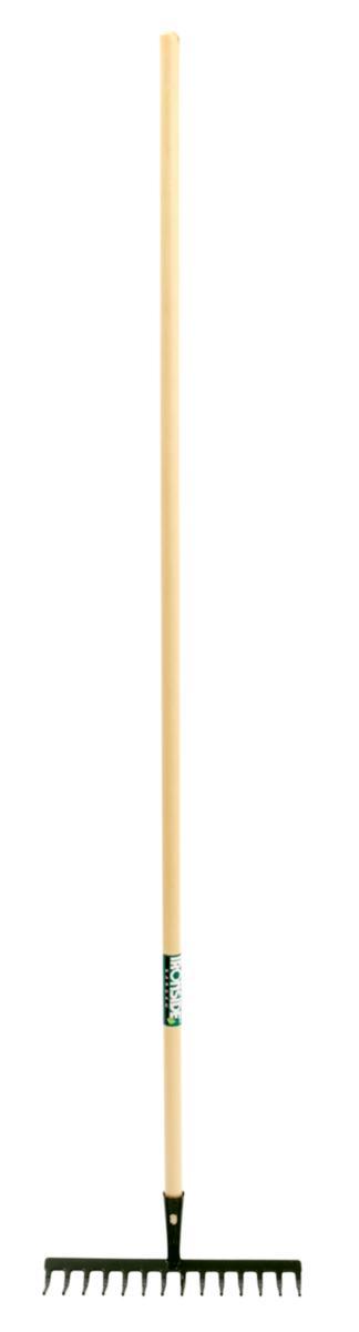 Harava, jossa 16 taivutetut piikit sekä lakattu ruotsalainen mäntyvarsi. Leveys 365mm. Kokonaispituus 1650mm. Valmistettu Ruotsissa.