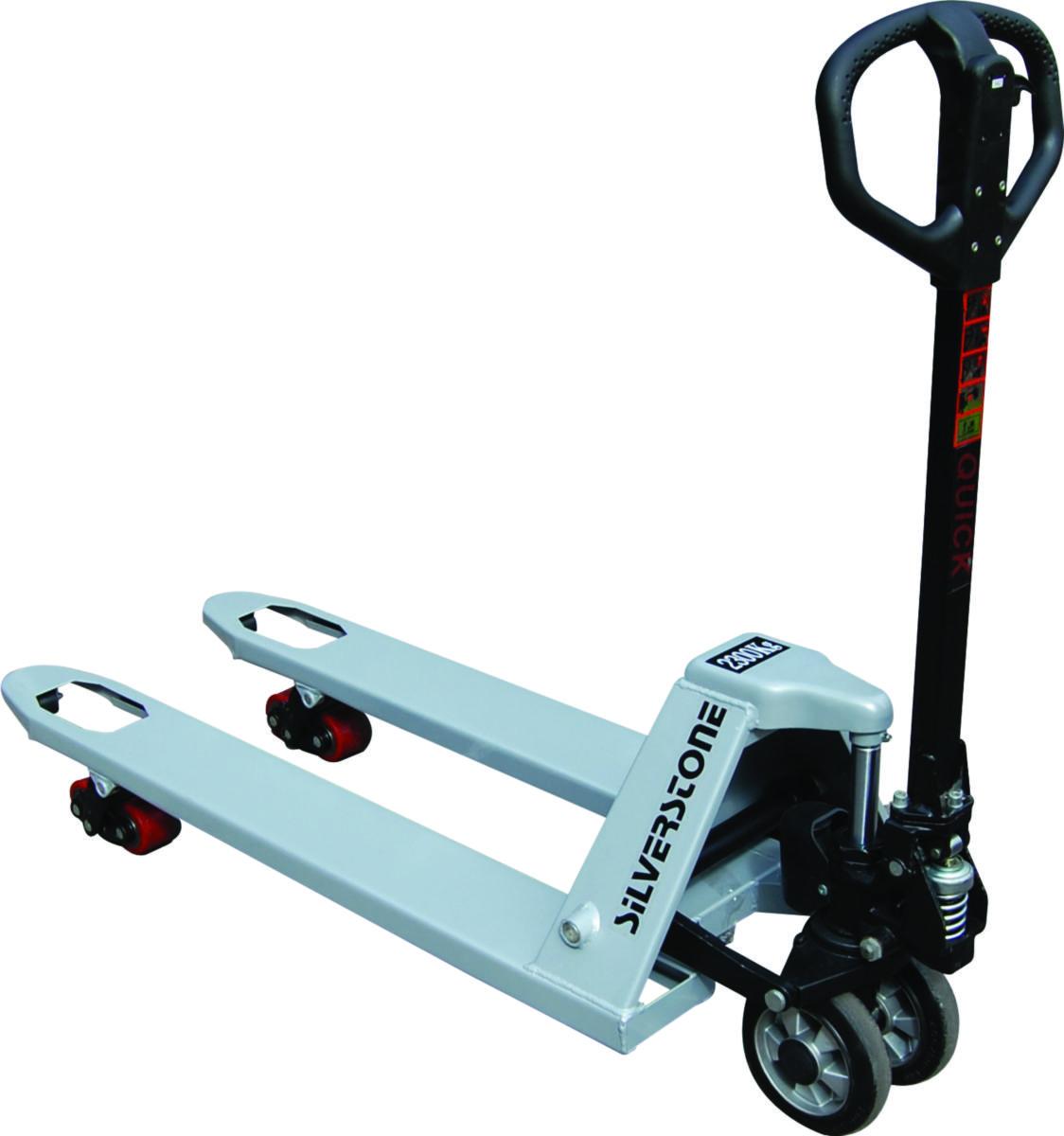 Automaattisella pikanostojärjestelmällä varustettu haarukkanostovaunu, joka ei vaadi huoltoa. Ylivirtausventtiili takaa, että liikakuormausta ei voi tapahtua. Erittäin laadukas ja tarkka hydrauliikkapaketti. Kaksi nylonista valmistettua apupyörää suojaa haarukkapyöriä ja lavaa. Kumiset ohjauspyörät vakiona. Jalkajarru saatavana lisävarusteena.