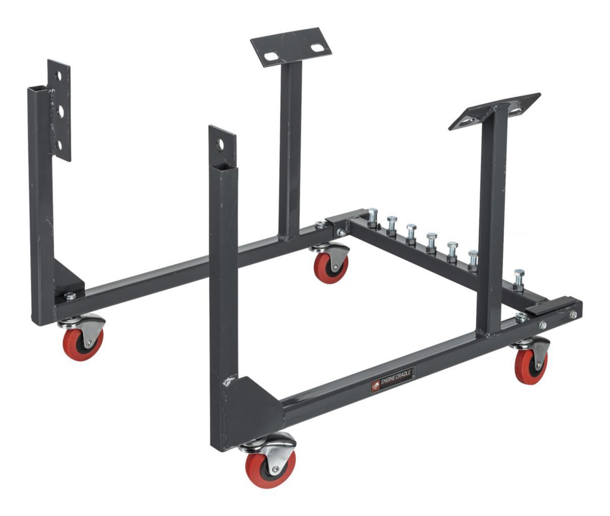 Moottorivaunu Chevroletin pikku- ja isolohkomoottoreille, täydellinen moottorin korjaukseen tai säilytykseen. Teräsvaunu on jauhemaalattu punaiseksi ja varustettu 4 kääntyvällä pyörällä. Ei sovi GM:n LS-moottoreille. Ks. LS-moottorivaunu tuotenro 35479844.