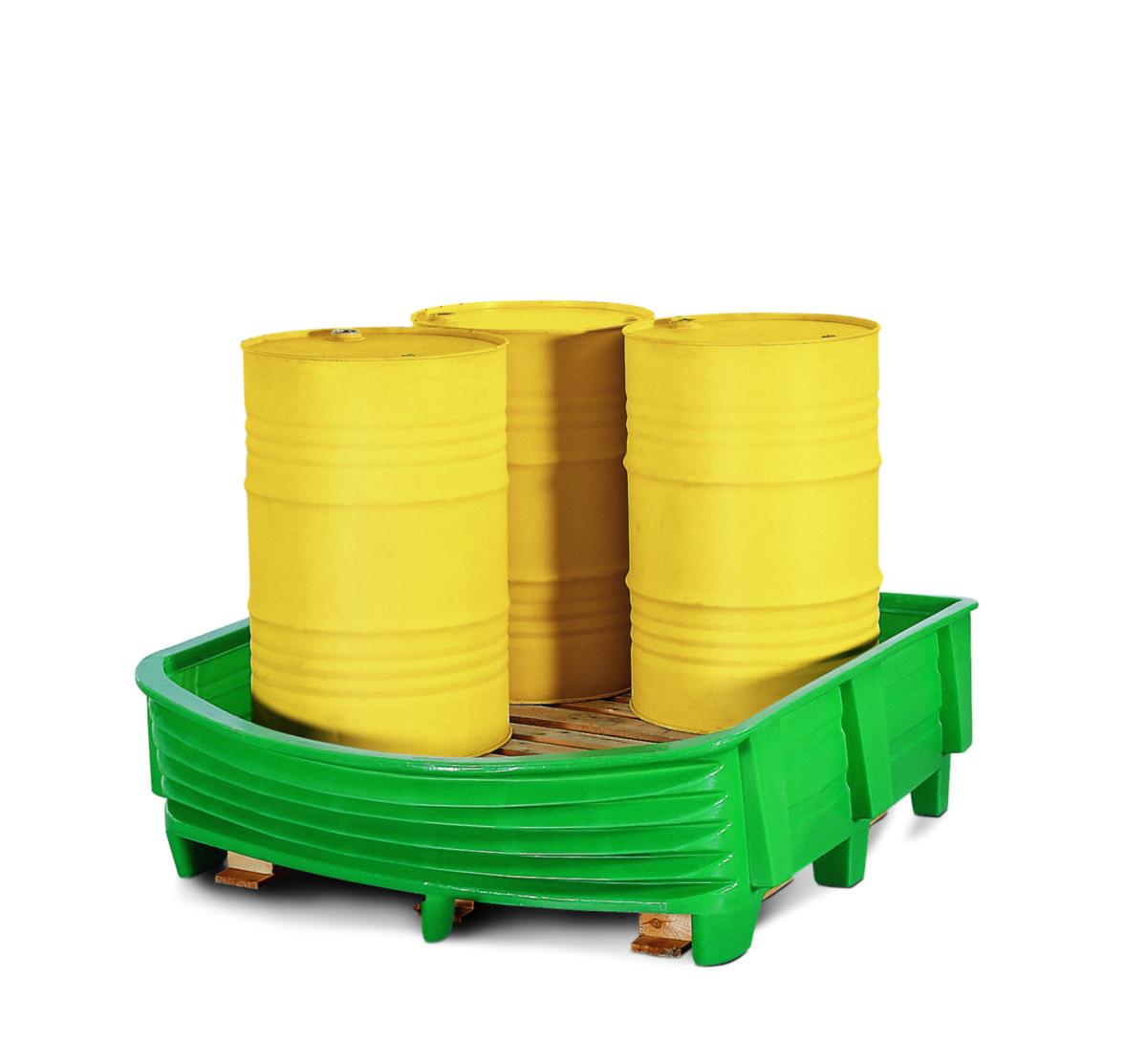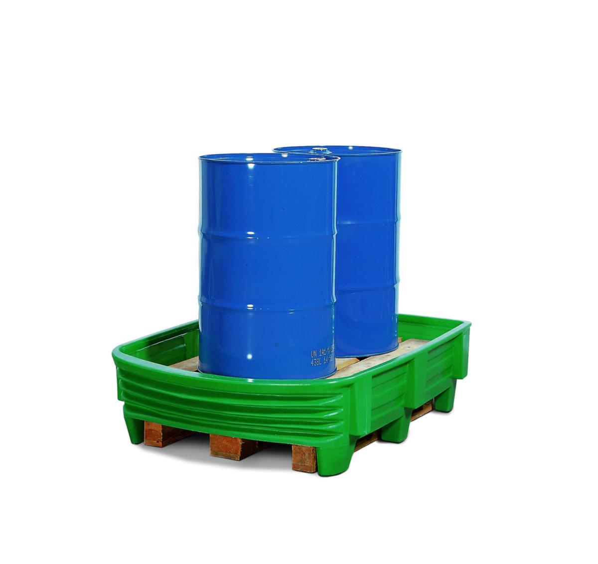 Haarukkatrukilla nostettava polyeteeninen valuma-allas tynnyreille.