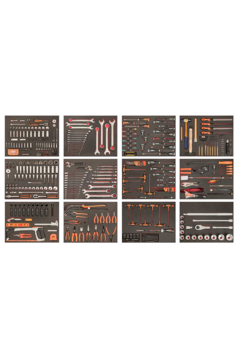 Työkaluvaunu, Heavy Duty, 9 vetolaatikkoa, E77 työkaluvaunu + 4 vetolaatikkoa E87 yläkaappi + työkalufoam