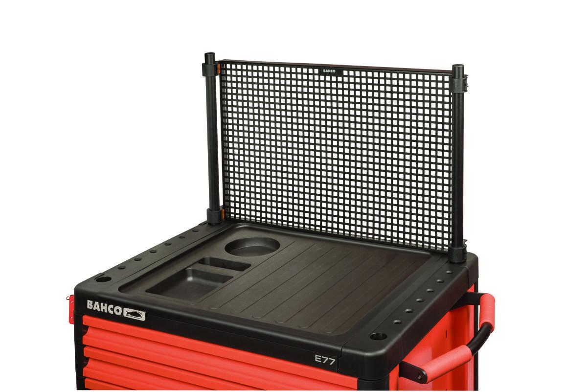 Tämä työkalutaulu lisää säilytyskapasiteettia vaunun päällä olemassa olevan Bahco-koukkujärjestelmän kanssa. Valmistettu teräksestä ja pinnoitettu neutraalilla mustalla värillä.