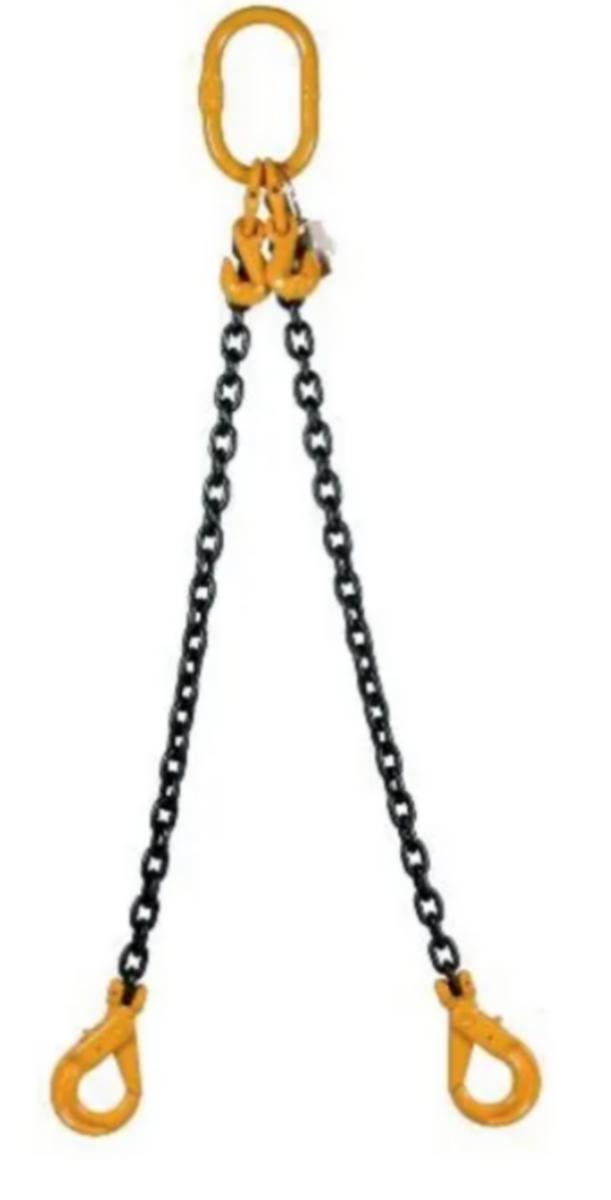 6 mm 2-haarainen nostoketjuyhdistelmä työkalulaatikossa. Varustettu varmuuskoukuilla ja lyhennyskoukuilla.