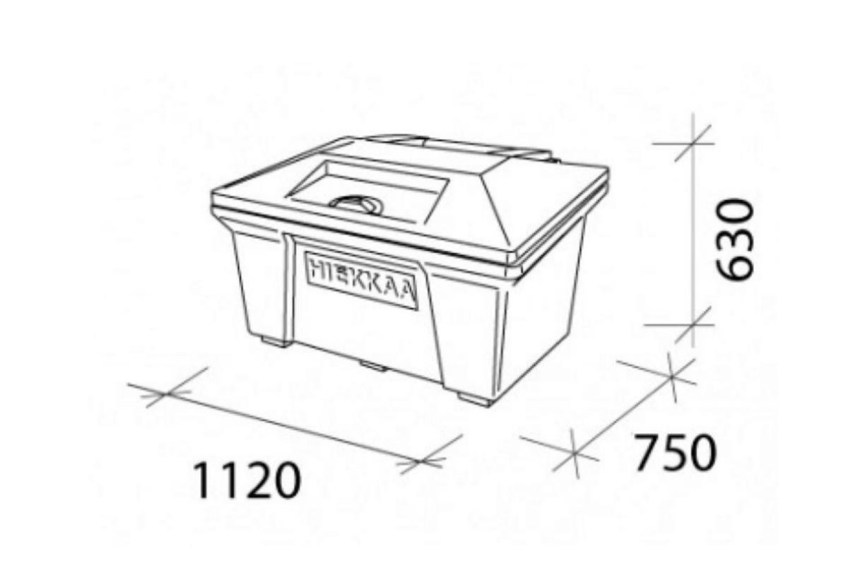 Hiekka-astia 350 materiaali kestää kovaakin käyttöä ja säänvaihteluita. Grafiitinharmaa väri sulautuu hyvin suomalaiseen maisemaan. Lisäksi kyljessä oleva teksti HIEKKAA erottaa sen jäteastiasta. Astiassa on tukeva saranoitu kahvallinen kansi.