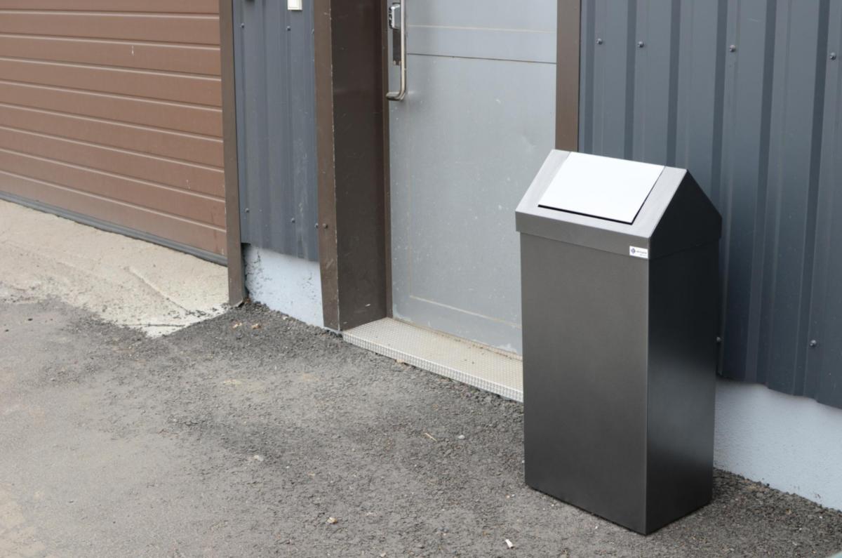 PP-Tuotteen tyylikäs Heiluri roska-astia on erinomainen valinta sisä- ja ulkokäyttöön. 80 litran roska-astia soveltuu jätesäkkien kanssa käytettäväksi. Astiassa on täyttöaukko molemmin puolin, ja se on helppo tyhjentää nostamalla kansi pois. Heiluri suojaa linnuilta. Tuote on valmistettu Suomessa.