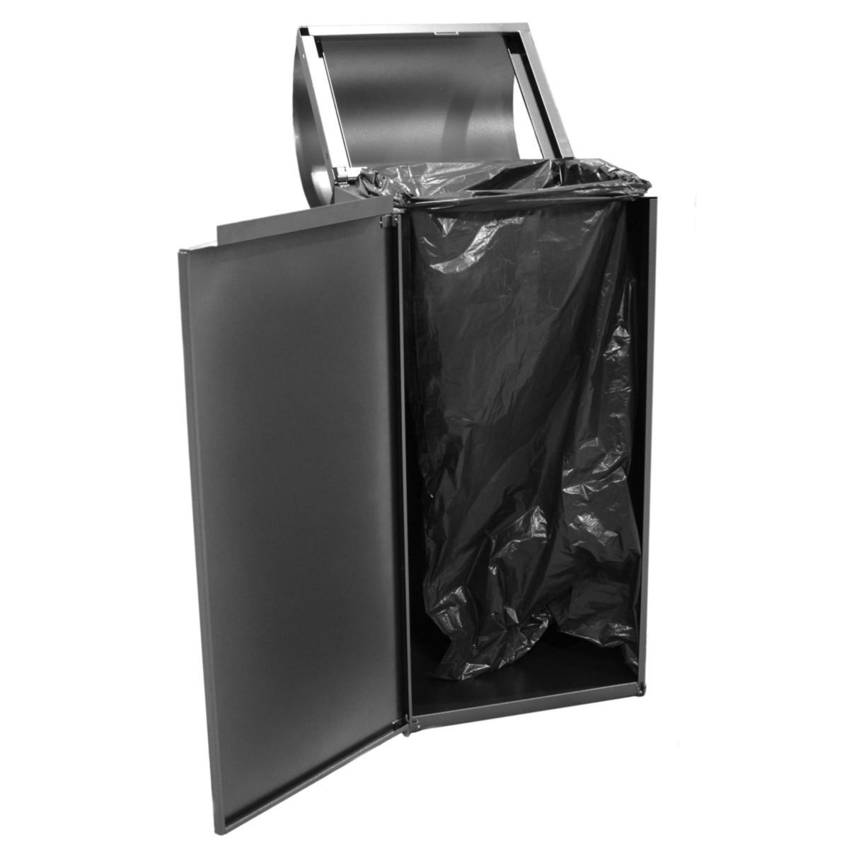 PP-Tuotteen Kaari roskis on tyylikäs valinta sisä- ja ulkokäyttöön. Roska-astiaa voi käyttää 100 tai 150 litran jätesäkeillä. Molemmilla puolilla olevat täyttöaukot helpottavat astian käyttöä. Roskis on helppo ja nopea tyhjentää. Tuote on valmistettu Suomessa.