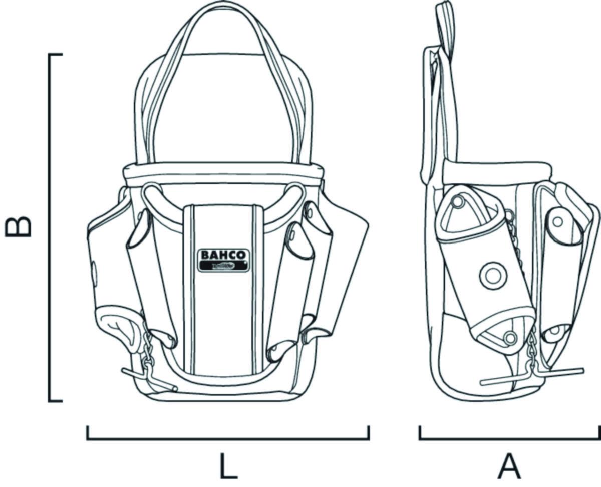 Erityinen muotoilu erilaisia sähkötyökaluja varten. Lujaa 1680 denierin polyesteriä ja niittivahvistukset. Tilava lokero pitkille työkaluille. Lisätasku pienempiä työkaluja varten. Nahkataskut sivuilla pitempiä työkaluja varten. Kantokahva. Ruostumattomat metalliosat. Ketjukoukku eristysteippien helppoa käyttöä varten.