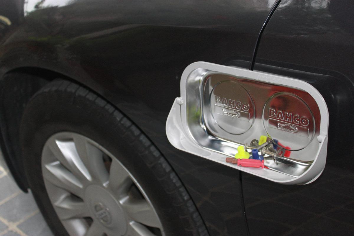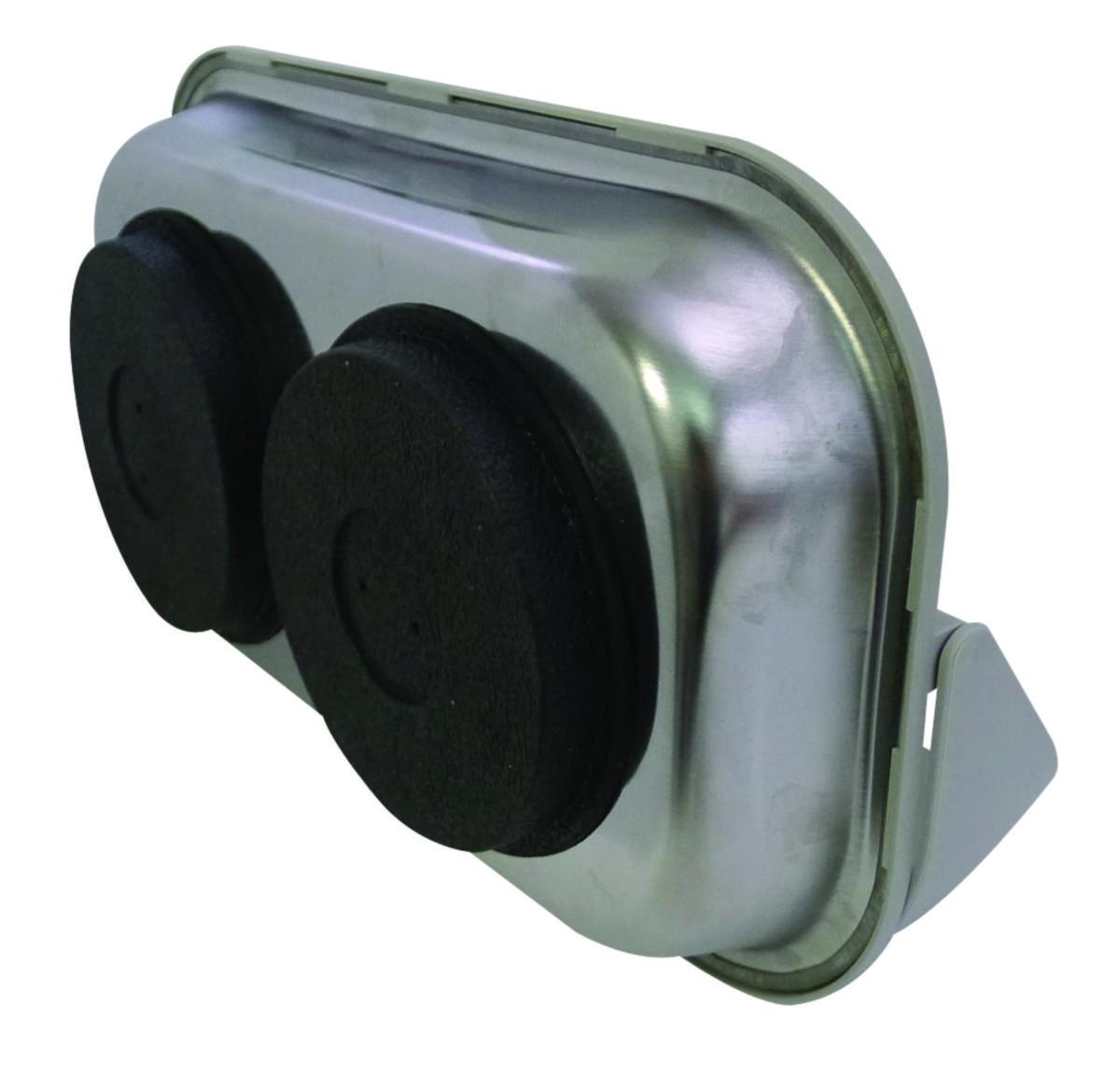 Suorakulmainen magneettikulho. Pulttien, muttereiden ja työkalujen helppoon säilytykseen esimerkiksi korjaamolla. Sisältää magneettisen kumisuojatun alustan, joten se voidaan kiinnittää kaikkiin magneettisiin pintoihin. Magneettinen kumisuojattu alusta ei vahingoita auton koria. ABS-jatko-osa ei-metallisten osien säilytykseen. Jatko-osa mahdollistaa esineiden säilyttämisen pystyasennossa niiden putoamatta. Valmistettu ruostumattomasta teräksestä. Mitat: 240 x 140 mm. Myymäläpakkaus.