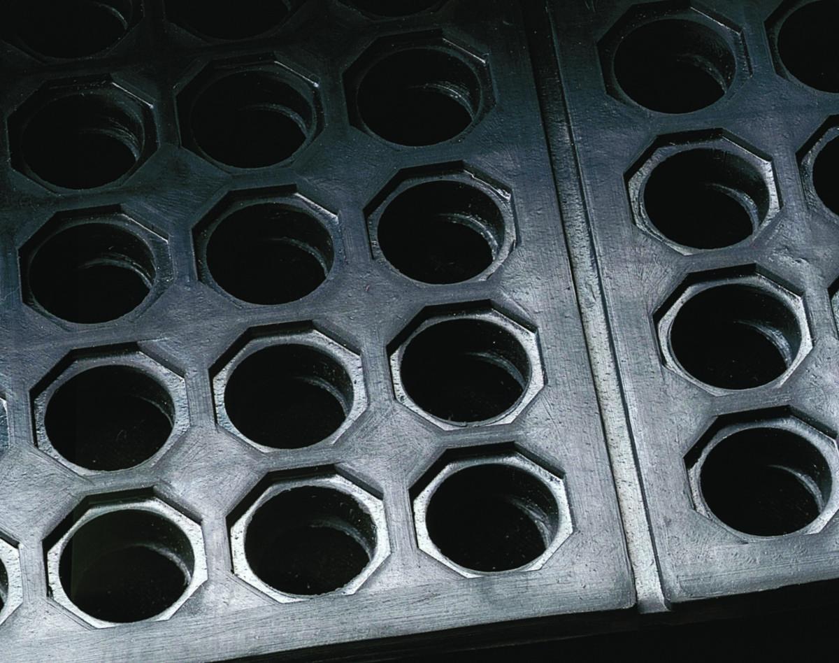 Reikäkuvioitu. Pehmeä, vaimentava ja erittäin liukumaton. Kiinnittyy lattiaan pienillä tapeilla, jotka nostavat mattoa – lattia tuulettuu. Helppo pitää puhtaana. Kestää hyvin kulutusta ja lämpöä. Moduulijärjestelmä. Kierrätettävää materiaalia. Sopii varastoihin ja kevyeen teollisuuteen. Sekoitus nitriili- ja luonnonkumia, jotka selviävät lyhyestä altistuksesta öljyille, rasvalle ja kemikaaleille. Musta.