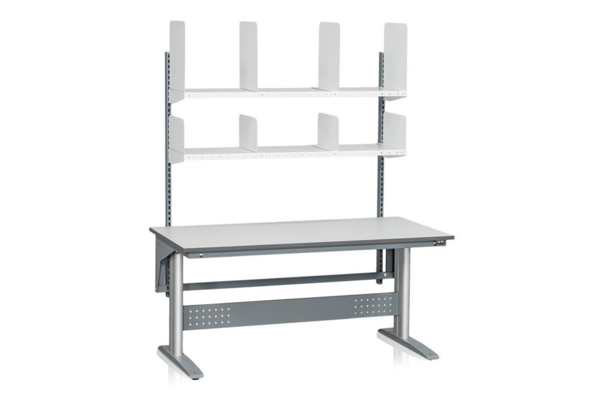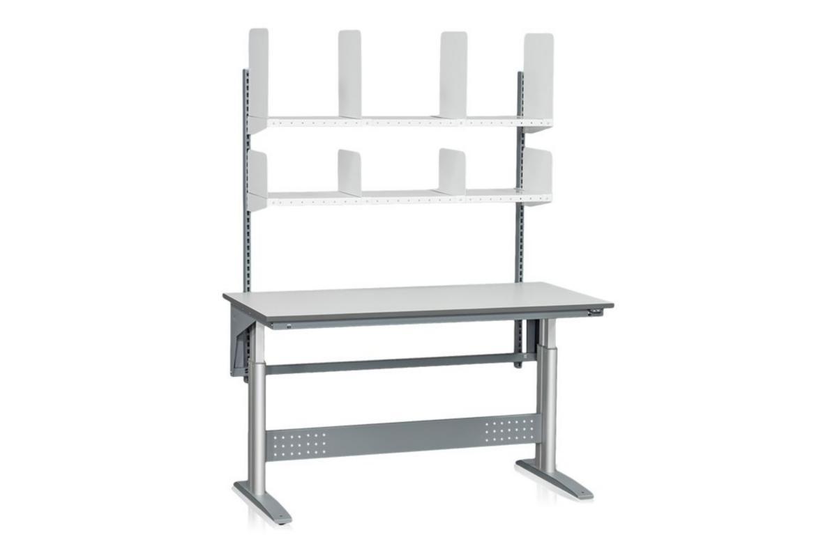 Moottorikäyttöinen pakkauspenkki soveltuu esimerkiksi kokoonpano-, konepaja- tai pakkaustöihin. Työpiste on valmistettu lakatusta teräksestä, joka kestää korroosiota ja kulutusta, pinta on likaahylkivä. Korkeutta säädetään pöytäohjauksella (nostonopeus 35 mm/s kuormittamattomana). Työpöytä on varustettu kaksoismoottoreilla ja pistokkeilla 230 V/50 Hz. Jaloissa on säädettävät jalat ja ne voidaan varustaa myös pyörillä. Maksimikuorma on 250 kg jaettu paino. Minimikorkeus 690 mm ja maksimikorkeus 1180 mm. Mukana laminaattityötaso (1600x800x24 mm), 2 rei'itettyä pilaria, 2 pakkauspöytähyllyä (1400x360) hyllynjakajalla. Laminaattilevy antaa pöydälle kovan ja naarmuuntumattoman pinnan, joka kestää hyvin nesteitä ja kemikaaleja. Työtaso on helppo pyyhkiä pois ja pitää puhtaana. Reunalista harmaata ABS. Pöytä toimitetaan kokoamattomana.