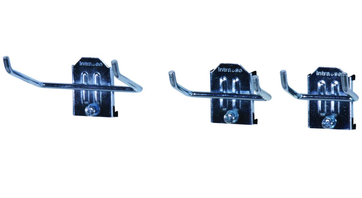 Koukku sopii rei'itettyihin paneeleihin, joissa se on koukussa peltirei'itykseen ja lukittu pysäytysruuvilla.