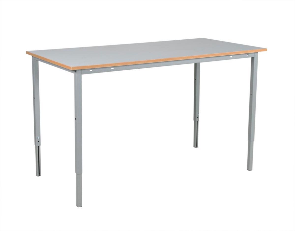 Työpöytä, jossa manuaalinen korkeudensäätö välillä 720-970 mm. Sopii erinomaisesti kevyeseen kokoonpanotyöhön. 20 mm: n pöytälevy vaaleanharmaalla laminaatilla. Maksimikuorma 150 kg jaettuna tasaisesti pöydän pinnalle.
