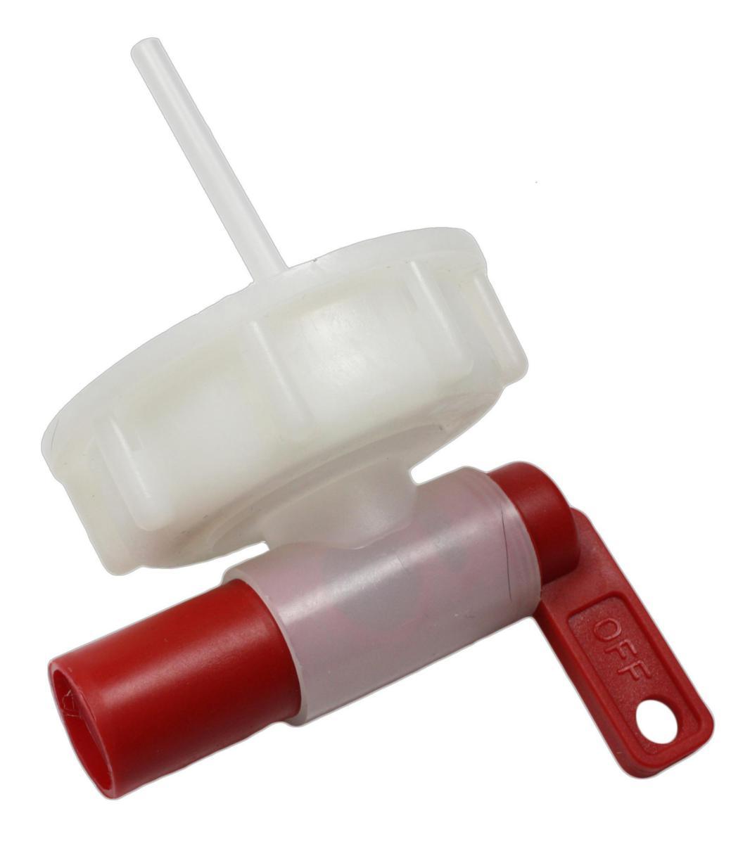 Korkki hanalla ja venttiilillä, sopii 25 litran kanisteriin.
