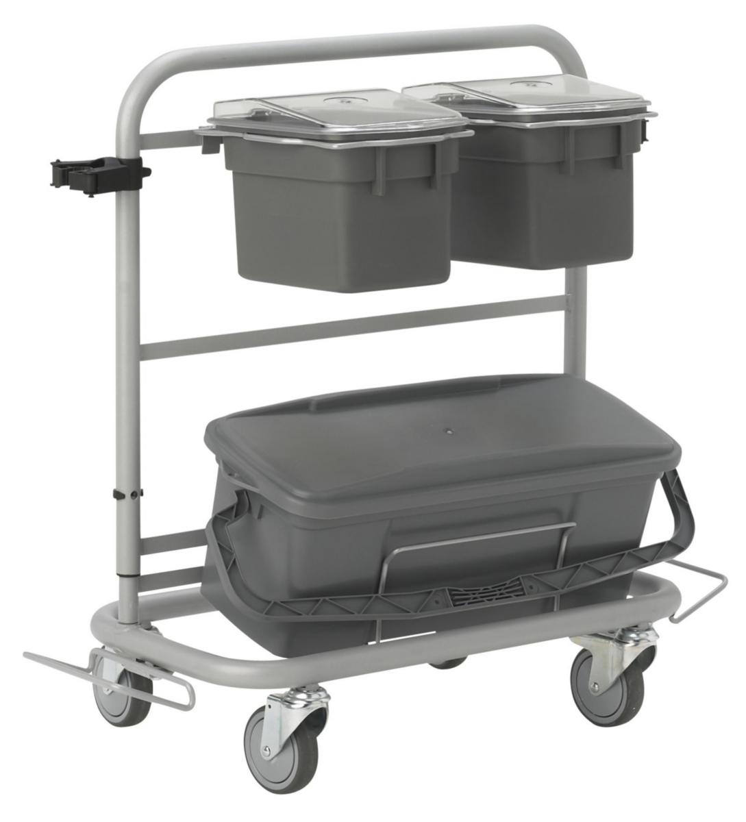 Pieni vaunu sopii alueille, joilla tilaa on rajoitetusti. Mukana yksi moppilaatikko ja 2 laatikkoa. Voidaan räätälöidä lisävarusteilla, jotka sopivat käyttäjälle ja tehtävälle.