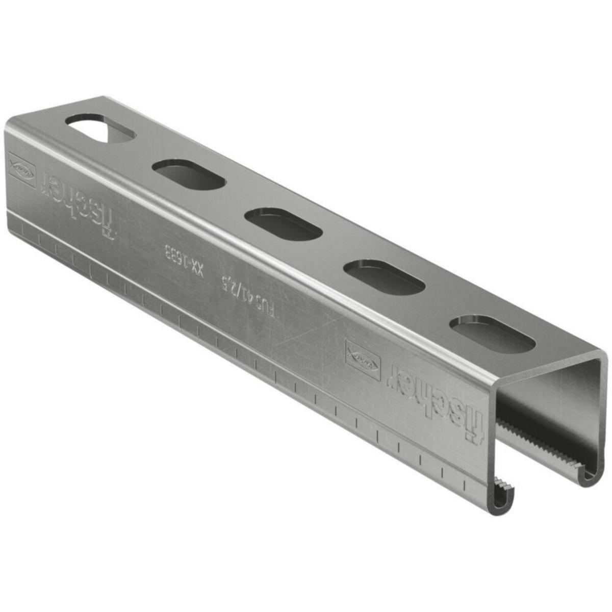 Laadukas fischer asennuskisko FUS 41/2.5 A4 - 2 m, on U-profiilinen asennuskisko, joka mahdollistaa turvallisten vaaka- ja pystyasennusten luomisen. Se mahdollistaa putkien ja tukirakenteiden nopean ja tehokkaan kiinnittämisen. Kiskon geometria takaa fischerin laajan kiinnityselementtivalikoiman käytön. Kiskon hammastus mahdollistaa liukumutterille vankan otteen kantaa pystyasennuksia ja suuria leikkauskuormia. Eri kanavan seinämäpaksuudet mahdollistavat taloudellisen kanavien asennuksen. Asennuskiskossa oleva mittakaava helpottaa komponenttien leikkaamista ja asettamista. Asennuskiskon pitkät urat tarjoavat paremman mahdollisuuden kiinnikkeiden asentamisessa.