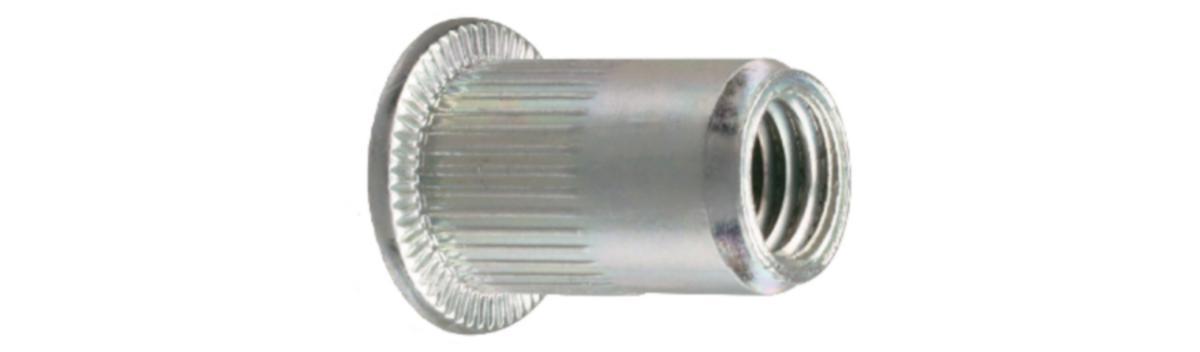 Tasainen pää avoimella päällä - tyyppi FTT A2. Yksinkertaisen ja nopean kiinnityksen lisäksi sokkoniittimutterit tarjoavat vahvan mutterin kierteen ohuissa ruostumattomissa teräsmateriaaleissa. Mutteri asennetaan yhdeltä puolelta käsi- tai sähkötyökaluilla, mikä tekee siitä ihanteellisen käytettäväksi suljetuissa profiileissa, putkissa jne. Reiän mitat tasaisissa metrimitoissa yksinkertaistavat reikien tekemistä.