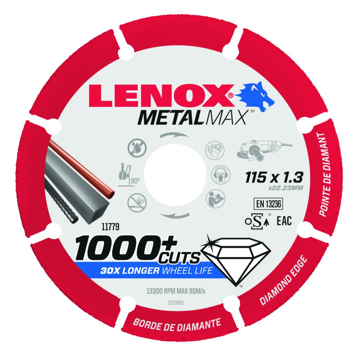 LENOX METALMAX™ on uusi innovaatio katkaisulaikkojen maailmaan. Laikkojen mullistava timanttiteknologia takaa paremman kestävyyden, turvallisuuden, toimivuuden sekä hinta/laatu -suhteen. Katkaisulaikka ei kutistu ja se kestää kolhuja, kosteutta sekä erilaisia lämpötiloja huomattavasti normaalia laikkaa paremmin. Laikan hajoamisriski kesken käytön on selvästi normaalia laikkaa pienempi. LENOX METALMAX™ on monikäyttöinen ja se toimii erilaisiin materiaaleihin mm. rautaan, teräkseen, RST, valurautaan, alumiiniin jne.