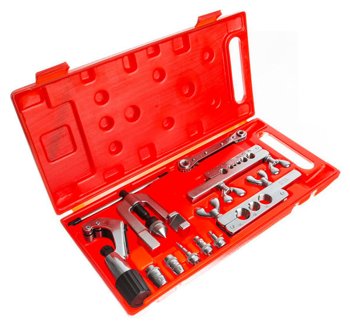 Mukana putkileikkuri 3-30 mm:n putkille ja kartiomeistit 5-16 mm:n putkille kätevässä muovikotelossa. Ei tarkoitettu jarruputkille - käytetään ilmastointiin.