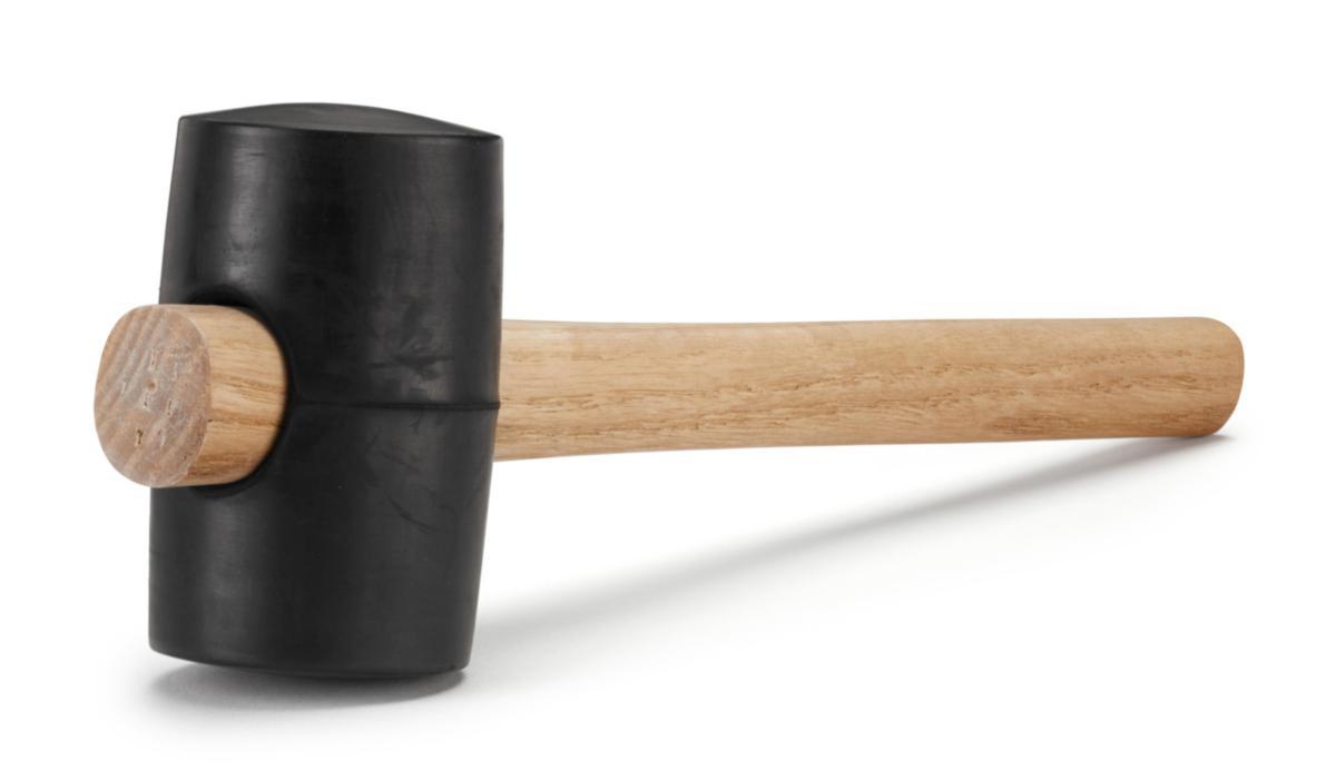 Mustasta massiivikumista valmistettu pää, kovuus 80/90 shore A. Puuvarsi saarnia.
