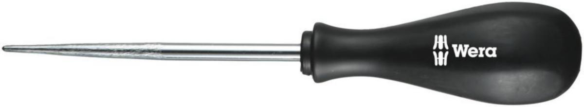 Weran lävistin tasaisten ja pyöreiden reikien tekemiseen, esimerkiksi porausta valmisteltaessa. Koko kahvan läpi kulkeva terä.